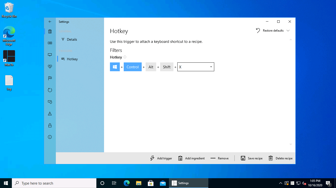 It's this oneAssign a hotkey, we chose Control X , and afterwards click Add ingredient.